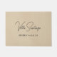Chic custom doormat bietet den Namen Ihrer Zuhause-Residenz in modernen, handgeschriebenen, schwarzen Schriftzeichen mit einfachen All-caps-Ortsangaben. Personalisieren Sie Ihre Zuhause - Villa + Nachname oder ein anderer bevorzugter Titel - und die Lage der Stadt und des Staat. Enthält eine neutrale, beige Hintergrundfarbe.