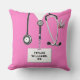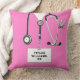 Kreative Krankenschwester Abschluss Kissen Geschenk mit rosa Krankenhaus-Skulpturen, ein Stethoskop und ein Schweizer Armeemesser. Bearbeiten Sie den Text, um Namen und berufliche Referenzen Ihrer Lieblingsschwester, Ihres Arztes oder Ihrer Ärztin hinzuzufügen.