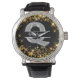 Uhr, Vintage Männeruhr mit schwarzem Lederarmband