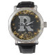 Uhr, Vintage Männeruhr mit schwarzem Lederarmband