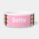 Eine Schüssel mit rosa und braunem Muster. Füge Deinen Namen hinzu.