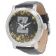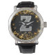 Uhr, Vintage Männeruhr mit schwarzem Lederarmband