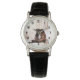 Uhr, Klassische Damenuhr mit schwarzen Lederarmband