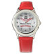 Kinderuhr aus Edelstahl mit rotem Lederarmband