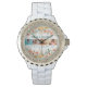 Weiße Damen Email Strassuhr