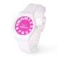 Mit dieser extrem heißen, rosa Armbanduhr, die mit Namen oder Text personalisiert ist, in leuchtendem, fluoreszierendem Neon-Hot-Rosa in der Menschenmenge auftauchen. Mit dieser modernen, soliden, rosa Fuchsienuhr und weißer Uhr macht es Spaß und frisch in mädchenhaftem Stil auszudrücken.