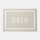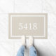 Modernes, minimalistisches Doormat personalisiert mit Ihren Zuhause-Adressnummern oder anderen benutzerdefinierten Texten. Klicken Sie auf die Schaltfläche Anpassen. Wählen Sie eine beliebige Hintergrundfarbe aus, ändern Sie die Schriftart, fügen Sie Ihren eigenen Text und Ihre Fotos hinzu, um Ihren eigenen Stil zu erhalten.