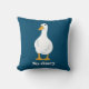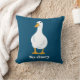 Dieses personalisierte Kissen ist einfach blöd! Es zeigt eine einfache, realistische Darstellung einer weißen Ente mit orangefarbenem Set und einem marineblauen Hintergrund mit einem eigenen Namen oder einer kurzen Nachricht in weißer Schrift unten. Auf der Rückseite ist ein koordinierendes Muster von weißen Entenfedern vor einem marineblauen Hintergrund. Es ist perfekt für Tierfreunde und Entenfans, besonders für diejenigen, die ein Kissen bevorzugen, das mit einer niedlichen Ente illustriert ist und das mit den Federn einer schlechten Ente gefüllt ist.