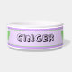 Hier ist die perfekte Katzenschale für die Keramik, die Lieben fangen. Diese Schüssel zeigt die Lieblings-Leckerei von Kitty rund um die Schüssel auf einem hübschen Lavendeluntergrund. Zusätzlich kann der Name der Katze auf die Konstruktion für eine große personalisierte Katzenschale der Keramik gesetzt werden. Copyright Kathy Henis