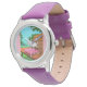 Uhr, Kinderuhr aus Edelstahluhr mit lila Lederarmband