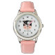 Kinderuhr aus Edelstahl mit rosa Lederarmband