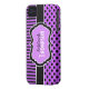 Personalisierte moderne lila, schwarze und weiße Polkapunkte mit Streifen Case-Mate kaum There™ iPhone 4 Fall.