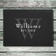 Elegante personalisierte Initialen Monogramm-Doormat mit Ihrem Anfangs- und Familiennamen mit Ihrem etablierten Datums-Set auf einem schiefergrauen Hintergrund. Personalisieren Sie Ihre Details und passen Sie die Farbe an die Farbe Ihrer Wahl an.