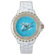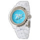 Girls and Women's Mit Monogramm Watch - Fun und brillante, saubere und klassische personalisierte Uhren für das elegante, aber gemütliche Girl Girl auf Ihrer Geschenkliste. Klassisch und feminin mit leicht lesbaren grauen Hashmarken weist ein hellblaues Gesicht auf, mit weißem Initial- und optionalem schwarzen Skriptnamen. Fett und ausgeklügelt für Führungskraft im traditionellen Stil - klicken Sie auf Anpassen, um die Hintergrundfarbe, die Größe des Schriftartes, den Stil oder die Farbgebung zu ändern.