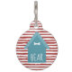 Stellen Sie sicher, dass Ihr Haustier mit diesem personalisierten Identifizierungs- (ID-)Tag sicher bleibe. Auf diesem Anhänger befindet sich ein türkisfarbenes Hundehaus, das auf einem lustigen rot-weiß gestreiften Hintergrund steht.