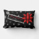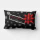 Dieses niedliche Lumbalkissen sieht aus wie ein festliches Weihnachtsgeschenk! Die trendigen Weihnachtsfarben sind schwarz, rot und weiß. Fallende weiße Schneeflocken auf schwarzem Hintergrund simulieren das Packpapier und es wird mit einem hübschen, realistisch aussehenden rot-sternförmigen Bogen und einem Weihnachtsschild, das leicht personalisiert werden kann, abgehoben. Dieses festliche Kissen wird die perfekte Ergänzung zu Ihrer Zuhause in dieser Ferienzeit sein.