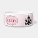 Leuchter auf einem rosa Hintergrund auf diesem personalisierten rosa schwarzen Chic-Hundehaustier rollen. Vervollkommnen Sie für Ihre weiblichen Schoßhunde.