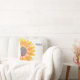 Dieses einzigartige Kissen ist mit gelben, wasserfarbenen Sonnenblumen dekoriert.
