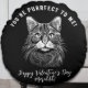 Dieses schöne und elegante runde Kissen eignet sich hervorragend für einen schönen Valentinstag. Eine elegante Katze dekoriert sie, die mit weißen Linien auf schwarzem Hintergrund gezeichnet wird, um einen stilvollen Effekt zu erzielen. Der Text "Du bist mir zugehörig!" wird dir helfen, deine Liebe in einem lustigen Wortspiel zu zeigen. Der untere Text mit dem kalligrafischen Schriftart ist vollständig anpassbar. Perfektes Geschenk für einen Katzenliebhaber Valentine!