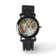 Uhr, Vintage Männeruhr mit schwarzem Lederarmband