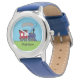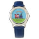 Kinderuhr aus Edelstahl mit blauem Lederarmband