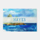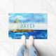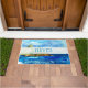 Blue Beach Coastal Ocean und Felsen Doormat mit einem schönen Strand Hintergrund und dem Familiennamen. Ideal für einen Strandvorsprung oder als Geschenk für Freunde und Familien mit Meerblick.