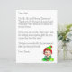 Fügen Sie dem personalisierten Brief des Weihnachtsmannes den Namen Ihres Kindes hinzu. Niedlicher Vintager Stil Elf lächeln mit einer Geschenkboxen. Zurück hat ein Nordpol-Schild mit leuchtenden Weihnachtsbeleuchtung und einem schneebedeckten Hintergrund mit einer Briefmarke vom Santa und dem Nordpol.