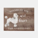 Funny Vorsicht vor dem nassen Kisser" weiße Poodle Hundentüre matt Set auf einem rustikalen Imitat Hintergrund. Besuchen Sie unseren Shop, um eine große Auswahl an Hundebrotten zu sehen