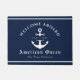 Das Nautical "Welcome Abard" Bootsmatte Design besticht durch eine stilvolle marineblau-blaue und weiße Küstenästhetik, die mit einem Bootanker betont wird. Personalisieren Sie es mit dem Namen Ihres Bootes, der Ortschaft, dem Staat und dem festgelegten Datum für eine einzigartige Touch. Diese individuelle Matte ist ein fantastisches Geschenk für Bootsbesitzer, ideal um Gäste an Bord zu empfangen.