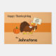 Grüße deine Gäste mit etwas Spaß in diesem Erntedank. Doormat mit Gruß "Glückliches Thanksgiving" und Cartoon-Image eines nicht so glücklichen Truthühners. Personalisieren Sie den Familiennamen. Dauerhaftes Design, um für viele Erntedank zu stehen. Pass auf!