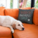 Ein lustiges personalisiertes Kissen für den Lieblingsplatz des Hundes im Haus. Passen Sie sich an für ein tolles Geschenk für Eltern mit Haustieren. Niedlicher Text mit Hundepuppdruck.