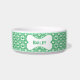 Verwöhnen Sie Ihr wertvolles Haustier mit diesem personalisierten zeitlosen grünen Gingham mit Pfoten gemusterte Haustierschüssel! Personalisieren Sie es mit dem Namen Ihres Hundes im Knochen.