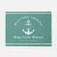 Das Nautical "Welcome Abard" Bootsmatte Design besticht durch eine stilvolle marineblau-blaue und weiße Küstenästhetik, die mit einem Bootanker betont wird. Personalisieren Sie es mit dem Namen Ihres Bootes, der Ortschaft, dem Staat und dem festgelegten Datum für eine einzigartige Touch. Diese individuelle Matte ist ein fantastisches Geschenk für Bootsbesitzer, ideal um Gäste an Bord zu empfangen.