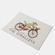 Tierfreunde begrüßen die Mat. Text kann mit Ihrem Namen oder Slogan personalisiert werden. Hunde mit einer Beret, die mit einem Fahrrad mit einem Eichhörnchenfreund im Korb reitet. Eine skurrile Tür, die ein lustiges Geschenk für neue Hausbesitzer und Tierfreunde macht. Besuchen Sie Jenn's Doodle World für noch originellere Kunst und Produkte mit diesem lustigen Design.