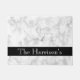 Eine Türmatte entwarf mit klassischem weißem, grauem und schwarzem Marmormuster. Betont mit einem Band des Jet-Schwarz-Sets mit Ihrem Namen angezeigt mit trendy weißem Schriftart. Fügen Sie einen Flair der Kultiviertheit Ihrer vorderen Tür hinzu.