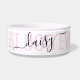 Rosa, schwarze und weiße Hundeschüssel mit grauem "BEST DOG EVER" und dem Hundenamen in einem schicken und eleganten Kalligraphie-Script-Schriftart-Textüberlagern. Geben Sie jeden personalisierten Text ein, den Sie für den Hintergrund und die obere Textschicht wünschen, um Ihre eigene rosa personalisierte moderne und minimale und lustige Keramik Haustierfutter oder Wasserschüssel zu erstellen. Sehen Sie sich unsere Sammlung von koordinierenden Schüsseln und erhalten Sie ein Set!