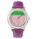 Uhr, Kinderuhr aus Edelstahluhr mit lila Lederarmband