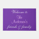 Willkommen Freunde und Familie. Hübscher violetter lila Hintergrund. Familienname in lilac-Farbskript. Klicken Sie auf Schriftart oder Hintergrund anpassen und ändern Sie die lila Farbe, oder um Text zu entfernen, Bild hochladen. Originale Entwürfe von TamiraZDesign.