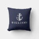 Personalisierter Name Nautic Anchor Navy Blue Kissen