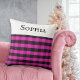 Ein stilvolles Kissen-Kissen für ein Bett, einen Stuhl oder ein Sofa. Das hübsche Kissen ist gemustert mit einem Büffel kariert in Rosa und Schwarz. Personalisieren Sie den Namen in Buchstaben in schwarzer Hauptstadt über der Oberseite des weißen Fensters. Das gemusterte Kissen des Karos macht zu Weihnachten und das ganze Jahr über ein elegantes Geschenk.