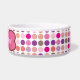 Bunter Polkapunkthintergrund mit dem rosa Hundeknochen und -raum, einen personalisierten Haustiernamen zu addieren kommt auf dieses Spaßhundegeschenk.
