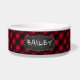 Verwöhnen Sie Ihr Lieblingstier mit einer personalisierten karierten Hundeschale. Rustikaler roter Büffel-Karo kariert mit einem Schiefernamentag und handgeschriebenem Skript. Personalisieren Sie Ihre Welpen mit Ihrem Namen. COPYRIGHT © 2020 Judy Burrows, Black Dog Art - Alle Rechte vorbehalten. Personalisierte Rustikale Red Black Buffalo Kariert Dog Bowl