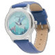 Kinderuhr aus Edelstahl mit blauem Lederarmband