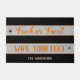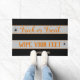 Halloween-Türmchen mit fett schwarzen und grauen Streifen, orangefarbene Schrift, die "Trick or Treat, Wischen Sie Ihre Füße" sagt, und ein kleiner Spinnenakzent. Ein spielerischer Weg, um Gäste und Trick-oder-Turniere willkommen zu heißen, während der Eintritt festlich und unterhaltsam behalten wird. Personalisieren Sie den Namen einfach mit nur wenigen Klicks!