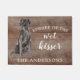 Funny Vorsicht vor dem nassen Kisser" Black Lab Dog Türmatte Set auf einem rustikalen Imitat Hintergrund. Besuchen Sie unseren Shop, um eine große Auswahl an Hundebrotten zu sehen