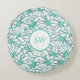 Personalisiertes Aquamarines und weißes Blumendesi Rundes Kissen