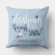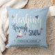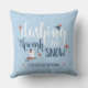 Ring in the holiday season with this cheerful throw pillow that’s perfect for adding a festive touch to any home. Featuring a simple holiday message that says, “Dashing Through the Snow,” an image of a child riding a sled, and a blue snowy background, this pillow is both charming and nostalgic. The design includes a customizable family name, allowing you to add your own text to create a unique and personal gift. Ideal for fans of farmhouse, cottage, or country-style decor, this pillow will make a wonderful addition to any holiday setting.