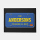 Feiern Sie ein eben verheiratetes Paar oder stellen Sie das perfekte Geschenk für eben genehmigte Fahrer und Autoenthusiasten mit diesem her, das einfach ist, willkommene Türmatte besonders anzufertigen. Dieses Ausrüstungsbeschreibungen, die ein blaues Kfz-Kennzeichen mit Gold und ein kleiner orange Ausrichtungsaufkleber in der Ecke beschriftet. Benutzen Sie das Schablonenfeld, um Ihren eigenen Namen und Text in jedes der Felder auszufüllen.