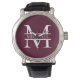 Personalisiertes elegantes Burgundy Monogramm und Armbanduhr