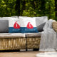 Atemberaubendes, weißes und blaues Segel-Wurfkissen mit rotem Boot auf weißem und blauen Farbblock Hintergrund , mit zwei Vorlagen, in denen Sie Ihren Familiennamen und Ihr Bootshaus hinzufügen können, Zuhause oder sogar Hütte , sehr einfach zu personalisieren und es zu Ihrem eigenen machen. Wenn Sie bei diesem Design helfen möchten, dann kontaktieren Sie mich bitte Janine durch meine Nachricht-Taste im Frühjahrsstudio, und wir freuen uns, Ihnen zu helfen.